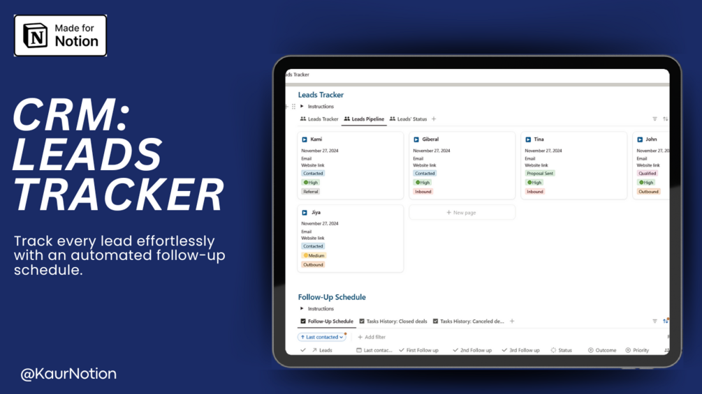- Interlinked Tasks: Connect tasks to specific leads for better organization.