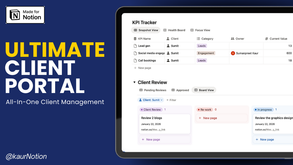 - Download the Notion Client Portal Template: Start with a plug-and-play system designed for busy professionals.