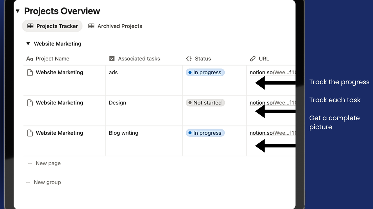Notion simplifies life by providing a unified space for notes, tasks, and projects, eliminating the need to juggle between different apps or platforms. Its organizational features such as the content calendar and project management system promote efficiency and ease in managing work. execution of tasks more streamlined, contributing to better work-life balance.
