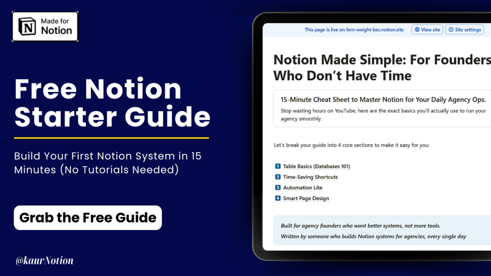 This Notion guide is designed to get you started fast, with zero jargon, no paid tools, and no 45-minute tutorials.