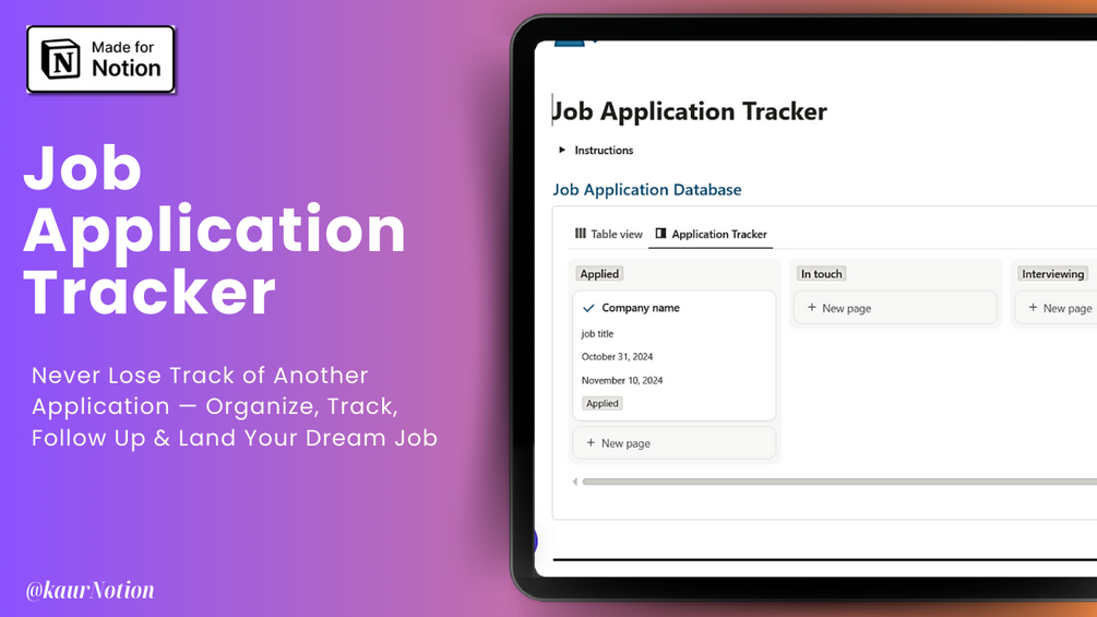 No more messy spreadsheets or forgotten interviews. The Job Application Tracker template in Notion helps you streamline your job hunt, track every application, and get reminded exactly when to follow up — so you never miss a beat.