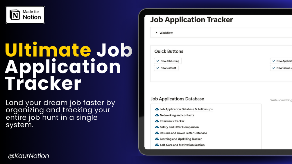 - Add job listings to the Job Application Database and move them directly to the Job Application Tracker when you apply.