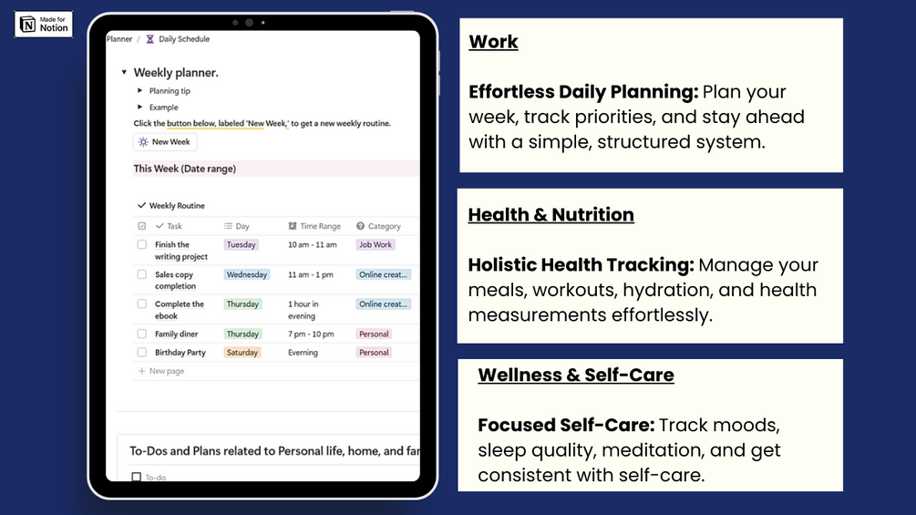 - What is the daily planner?It's an all-in-one Notion template to help you manage your health, work, and personal life more effectively.